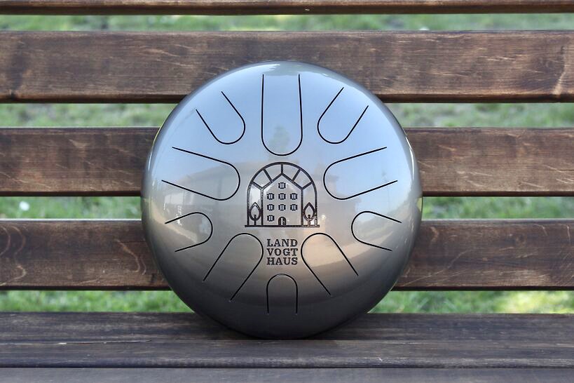 Das Plätschern des Brunnens zum Spiel der speziellen Musikinstrumente bringt Erholung, besonders an heissen Sommertagen.