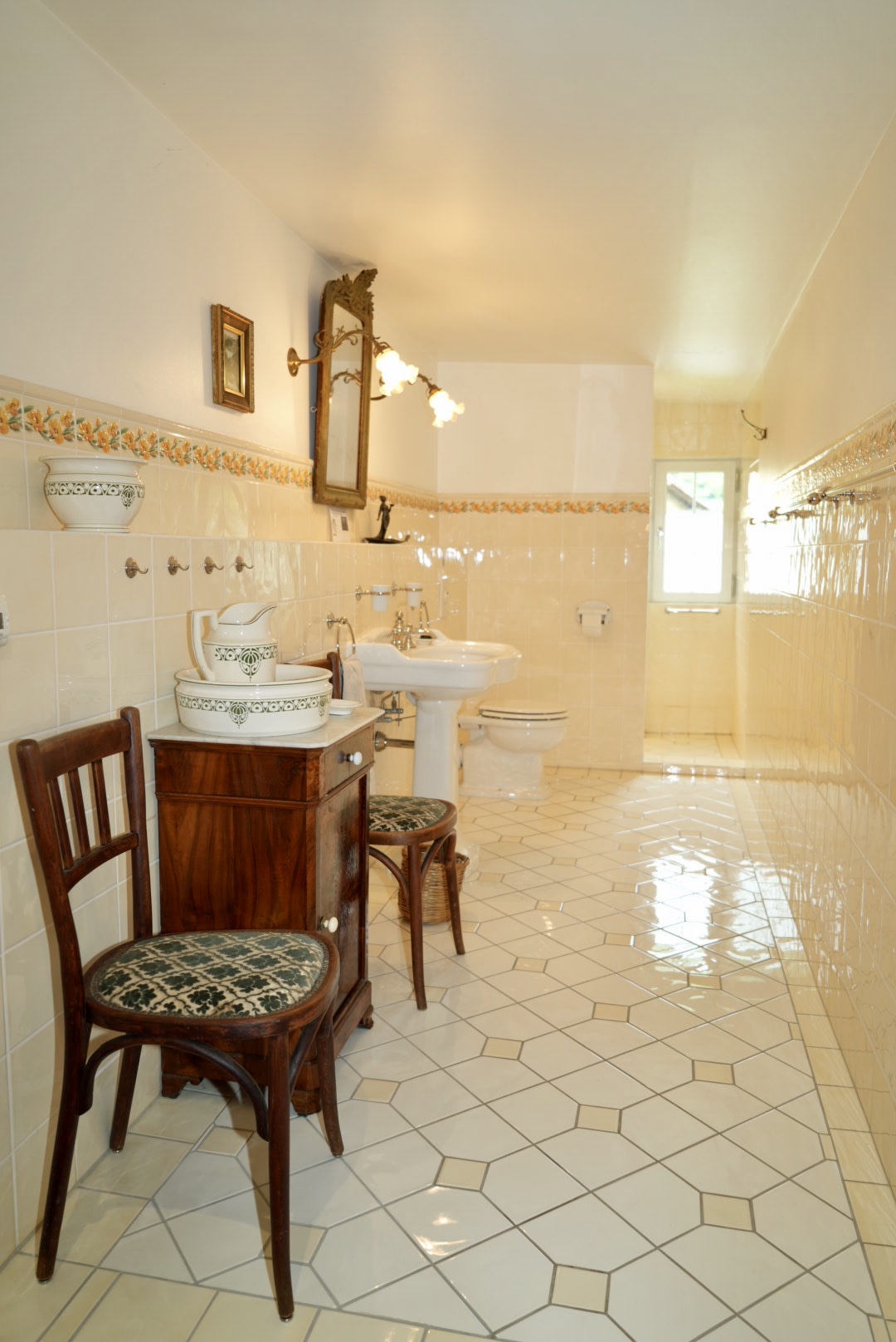 Das gelbe Badezimmer im perfekten und echten Stil der Belle Epoque, zwei Etagen tiefer, gehört zu diesem Zimmer. Ein königliches Badezimmer, das in Erstaunen versetzt.