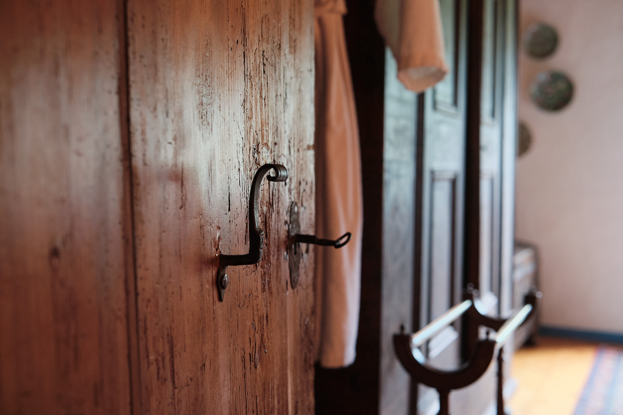 Ein prächtiger Barockschrank um 1730 ist ein seltenes Exemplar der Glarner Möbelbaukunst, bemalt mit einer speziellen Technik in Brauntönen. Die Reisetruhe aus dem Kanton Graubünden geht auf das Jahr 1688 zurück, natürlich auch im Originalzustand. An den Wänden finden sich auch hier alte Porzellanteller.
