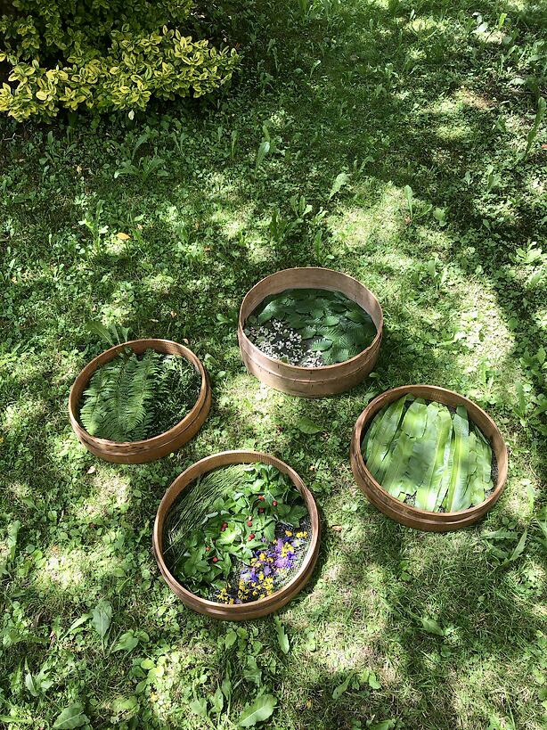 Das Plätschern des Brunnens zum Spiel der speziellen Musikinstrumente bringt Erholung, besonders an heissen Sommertagen.